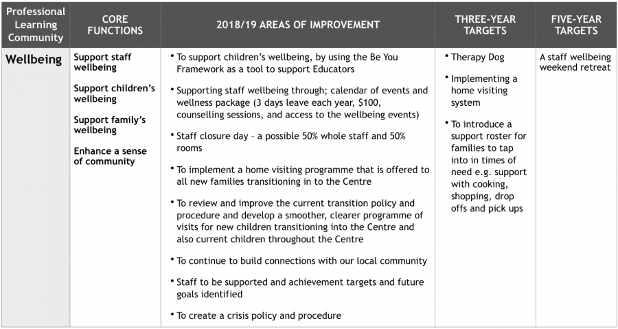 Our wellbeing PLC is always organising events for our staff team to help support the work life balance. Movie nights, wellbeing walks, meals out together, experiences that relate to helping others in need through charities like Backpacks for SA kids, Ronald McDonald House and the Hutt Street Centre. The MICCC Wellbeing PLC is comprised of an educator from each room, parent representatives and a leadership representative. They reflect and research together to develop strategies and set targets for overall centre wellness (See the WELLBEING PLC graphic). Our staff are very well looked after with money set aside to give staff wellbeing perks like cash for wellbeing related purchases and extra leave. It is of vital importance to look after the people around you because if one person is suffering it can impact the whole herd.